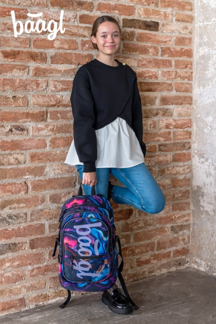 De stijlvolle Baagl Core Marble schoolset bevat een ergonomische rugzak, een ruim etui en een praktische zak voor gymschoenen of sport. Biedt waterdichte en gerecyclede materialen, laag gewicht, doordachte indeling en veiligheidsreflectoren – de ideale keuze voor scholieren die comfort en een opvallend design willen.