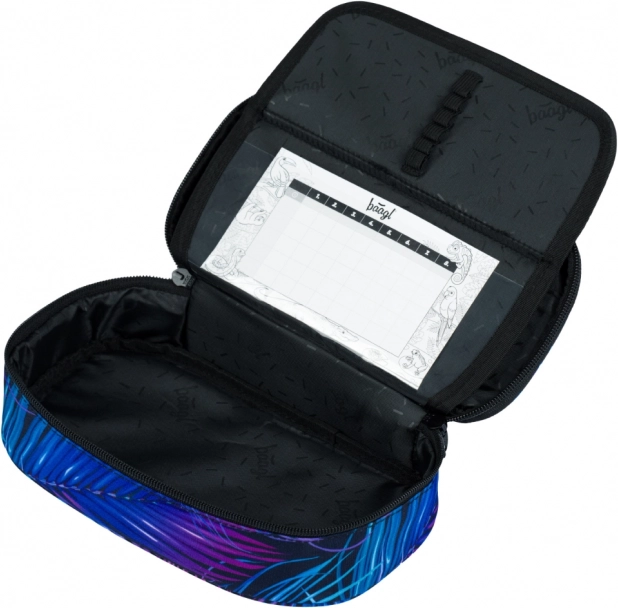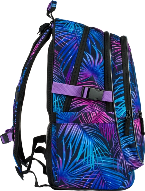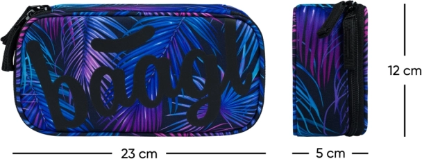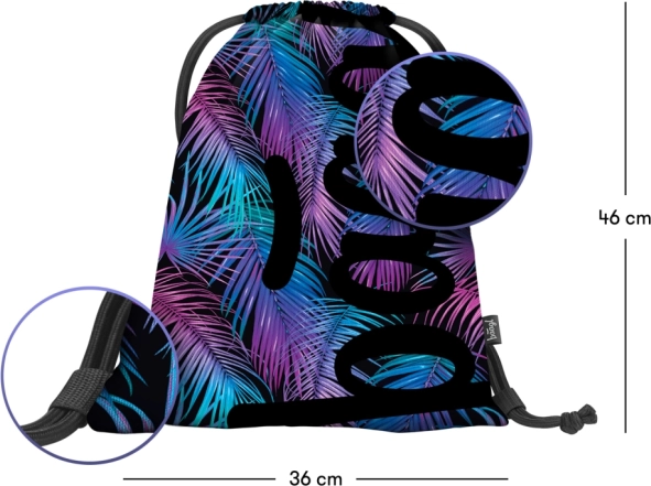 Ontdek een complete schooluitrusting in een uniform design met palmbladeren. De ergonomische rugzak met organizer en een vak voor een 15" laptop zorgt voor overzicht en comfort, de etui houdt schrijfwaren netjes op orde en de gymzak is ideaal voor schoenen of clubs. Dankzij de stevige constructie, gewatteerde rug en slijtvaste materialen is de set klaar voor het dagelijkse schoolleven.