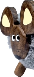 Dit decoratieve muizenfiguurtje combineert esthetiek en functionaliteit. Met een zachte textielvacht en handgeschilderde details is elke muis uniek. Gemaakt van wel vijf soorten natuurlijk hout, elk deel heeft zijn authentieke kleur, die niet geverfd is.
