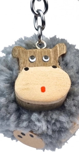Betoverende houten sleutelhanger met pompon Nijlpaard voor natuurliefhebbers. Handgemaakt, uniek en een veelzijdig cadeau.