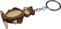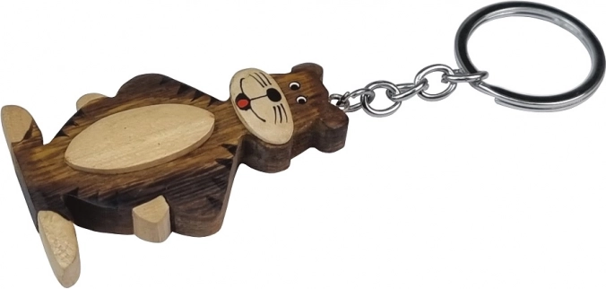 De houten sleutelhanger Tijger is handgemaakt van tot wel vijf soorten natuurlijk hout met hun eigen natuurlijke kleurschakeringen. De sleutelhanger bevat: