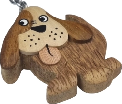 Verhoog je stijl met deze unieke houten sleutelhanger in de vorm van een hond. Dit handgemaakte accessoire combineert esthetiek en functionaliteit, waardoor het de ideale metgezel is voor je sleutels, handtassen of rugzakken. Gemaakt uit tot wel vijf soorten hout met een natuurlijke kleur, onaangetast door chemische kleuring.
