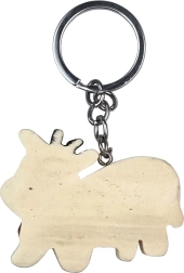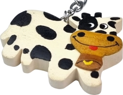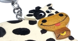 De sleutelhanger wordt met de hand gemaakt van wel vijf soorten hout met een natuurlijke kleuring. Het hout is niet geverfd, alleen subtiel met de hand nabeschilderd voor een levendige uitstraling van het koemotief.