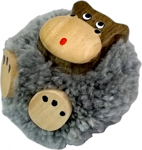 Het lichaam van het nijlpaard bestaat uit een zachte katoenen pompon in neutraal grijs, die uitnodigt om aan te raken en de decoratie een speels karakter geeft.
