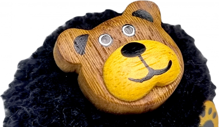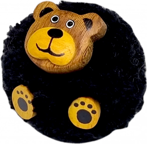 Het zachte textiele lijf met pompon en het houten berengezicht spreken zowel kinderen als volwassenen aan. Geweldig als decoratie en als klein cadeautje.