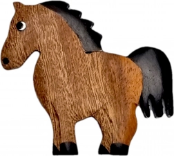 Stijlvolle houten magneet in de vorm van een paard die elke koelkast of magneetbord opfleurt. Handgemaakt uit wel vijf soorten natuurlijk hout, die niet geverfd zijn – de kleur ontstaat geheel natuurgetrouw. Elk stuk is uniek, subtiel beschilderd en klaar om te verrassen als decoratief element en klein cadeautje voor liefhebbers van natuur en dieren.
