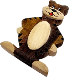 Een schattige houten magneet in de vorm van een tijger die elke koelkast of magnetisch bord opvrolijkt. Handgemaakt uit wel vijf soorten natuurlijk hout en alleen met de hand bijgewerkt – zonder chemische kleurstoffen. Een prachtig decoratief element en klein cadeautje voor liefhebbers van dieren en natuur.
