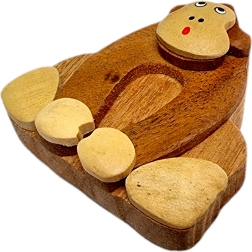 Elke aap is zorgvuldig uitgesneden en met de hand bijgewerkt. Het natuurlijke hout is niet geverfd, waardoor de authentieke structuur en kleurschakeringen mooi uitkomen.