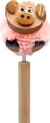 Een zachte roze pompon met een houten varkenskopje geeft de pen een uniek karakter en verrukt zowel kleine als grote dierenliefhebbers.