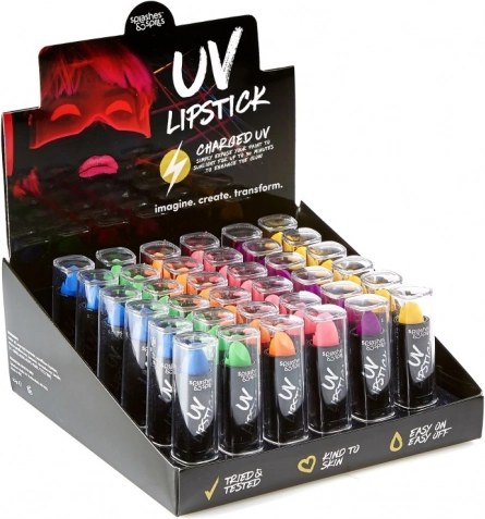 Met UV Lippenstift Splashes & Spills creëer je een unieke uitstraling die iedereen meteen opvalt. Kies je favoriete kleur en laat je lippen stralen.