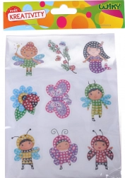 Diamond painting is een populaire DIY-activiteit die kinderen op speelse wijze leert zich te concentreren en precies te werken. Je werkt volgens de meegeleverde sjabloon met legenda (letters/cijfers), waarop je de gekleurde steentjes met behulp van een pen en was op de gemarkeerde plaatsen plakt. Het resultaat zijn sprankelende stickers met feeënmotieven die schoolspullen en de kinderkamer prachtig versieren.