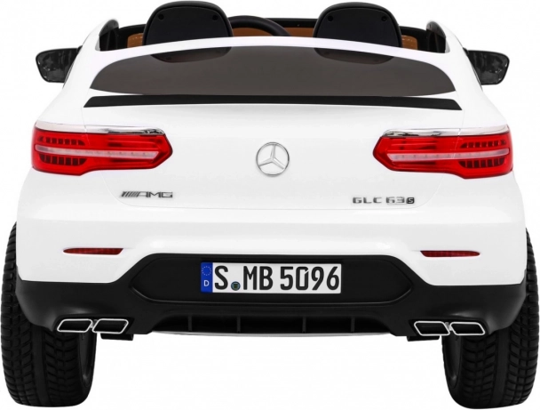 Stijlvolle elektrische kinderauto MERCEDES GLC 63 S in het wit met een realistische look van een luxe SUV en 4x4-aandrijving voor betere offroad-capaciteiten. Voorzien van 4 motoren van 45 W, een touch MP4-paneel, LED-verlichting, zachte EVA-banden en een geventileerde eco-leren zitting met veiligheidsgordels. Ouders waarderen de 2,4 GHz afstandsbediening met noodknop Stop en keuze uit 3 snelheden.