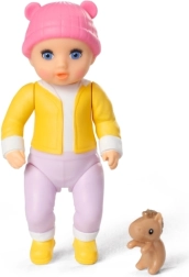 Mini-pop Eli is ongeveer 7 cm groot en klaar voor dagelijkse avonturen. Dankzij de beweegbare armpjes en beentjes kunnen kinderen haar gemakkelijk in de kinderwagen zetten en op pad gaan. Levendige kleuren, schattige accessoires en veilige materialen maken van deze set een geweldig cadeau voor kleine fans van rollenspellen en zorgen voor poppen.