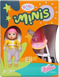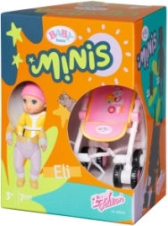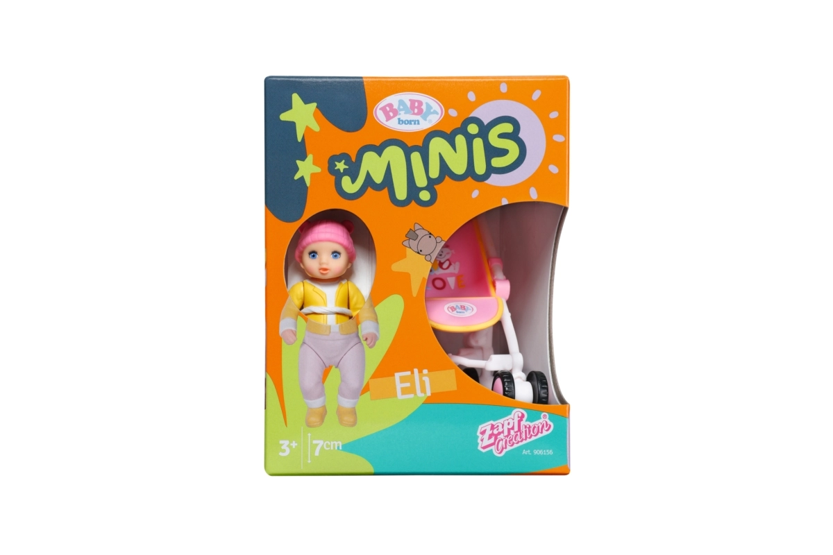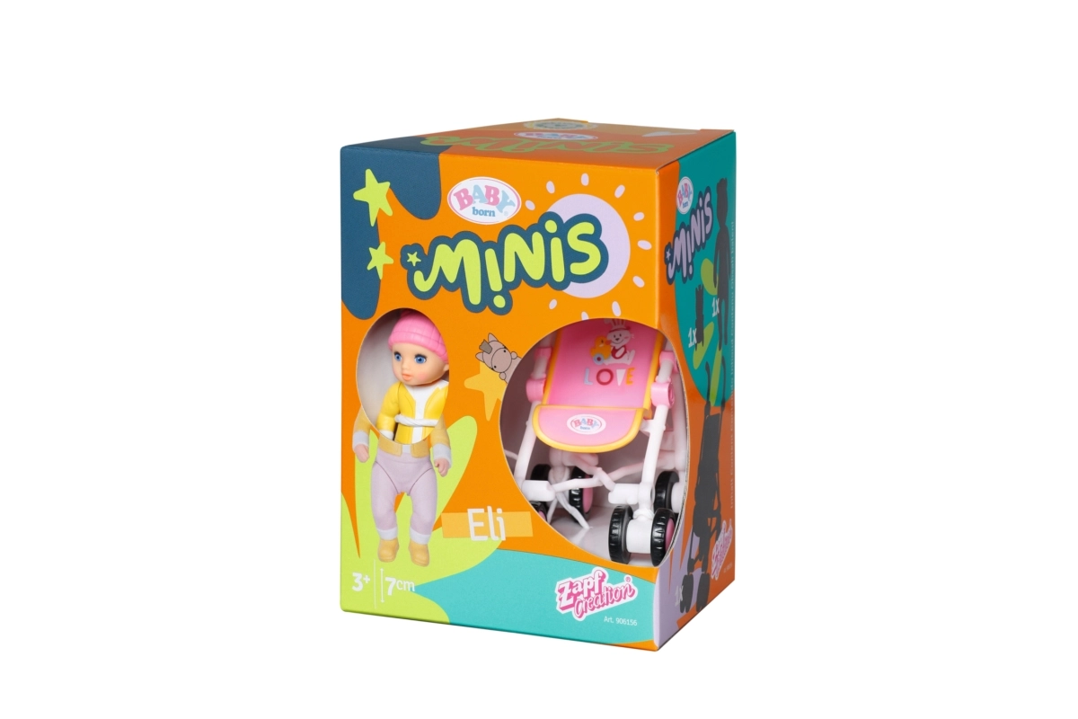 Ontdek de schattige mini-set voor creatief spel – BABY born Minis met pop Eli en een volledig functionele kinderwagen. Het compacte design is ideaal voor onderweg, bewegende ledematen prikkelen de fantasie en de duurzame uitvoering van kunststof garandeert een lange levensduur. Perfect voor kinderen vanaf 3 jaar die houden van poppen vervoeren in een kinderwagen en het bedenken van leuke verhaaltjes.