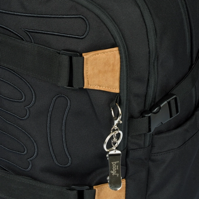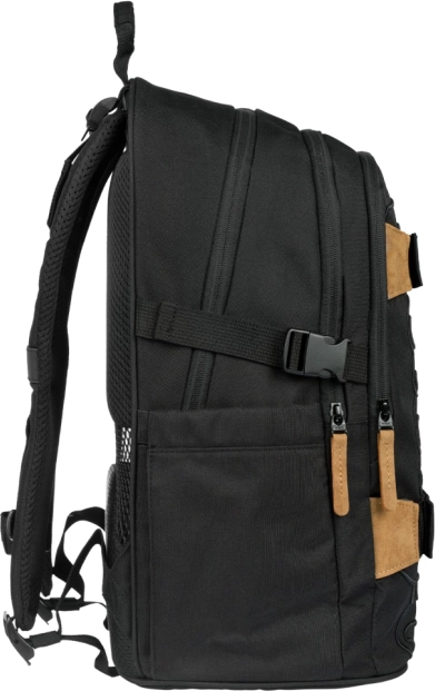 - Praktische details – houders voor skateboard, zijvakken voor een fles, metalen hanger in de vorm van een skateboard.