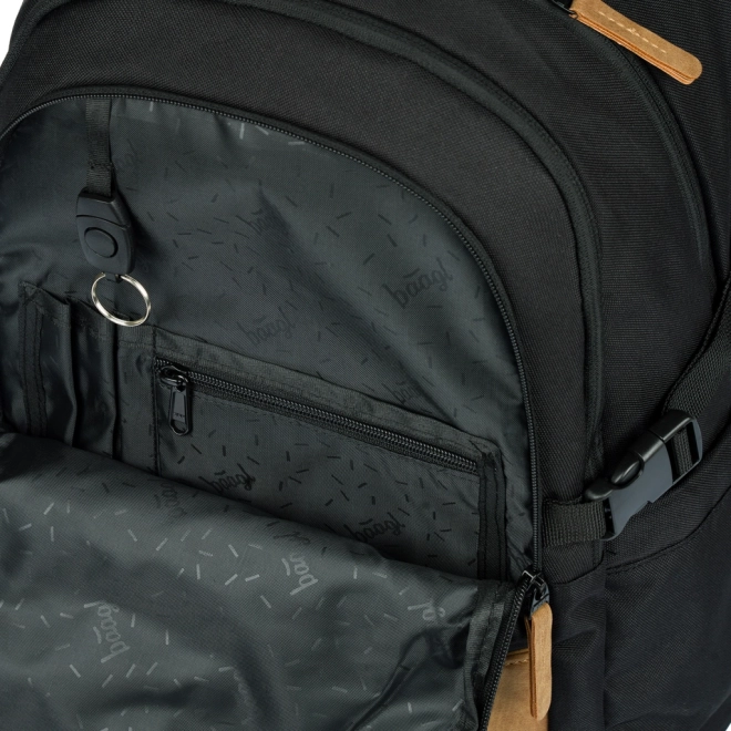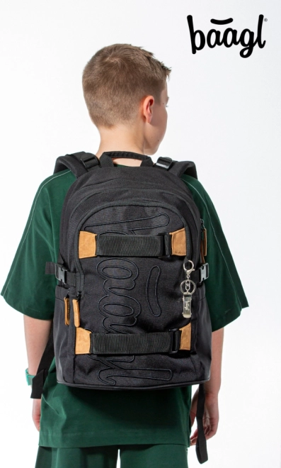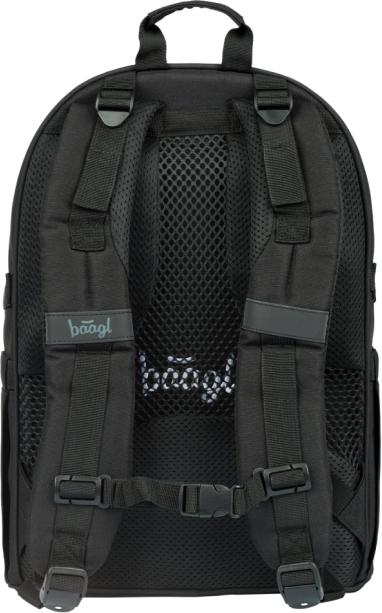BAAGL Skate Darkness is een doordachte schoolrugzak voor dagelijks gebruik naar school, clubs en stadsuitstapjes. Dankzij drie afzonderlijke vakken met interne organizer en een gewatteerd vak bergt u veilig schoolboeken, schriften en een 15" laptop of tablet op. Stevige zijvakken zijn ideaal voor een drinkfles, de voorriemen houden eenvoudig een skateboard vast.