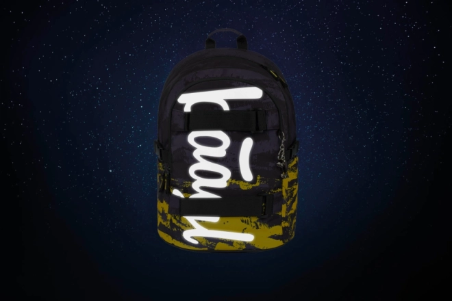 Twee voorste riemen bevestigen het skateboard stevig. Betrouwbare YKK-ritsen en reflecterende elementen verhogen duurzaamheid en veiligheid.