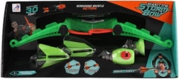 Veilig plastic set met boog en zuignap pijlen, bedoeld voor jonge boogschutters. Perfecte keuze voor het trainen van nauwkeurigheid en concentratie.