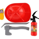 - Brandweerhelm, waterbrandblusser, bijl, koevoet, walkietalkie (kunststof accessoires)