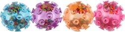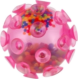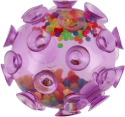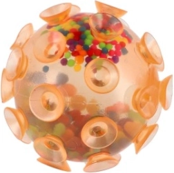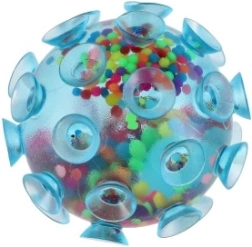 Ontdek sensorisch speelplezier met deze knijpbal die over het hele oppervlak met zuignappen is bedekt. Bij contact met een gladde ondergrond zuigt hij zich vast, wat veel creatieve speelopties biedt. De gekleurde bolletjes binnenin zorgen voor een prettige knijpweerstand en een rustgevend geluidseffect.