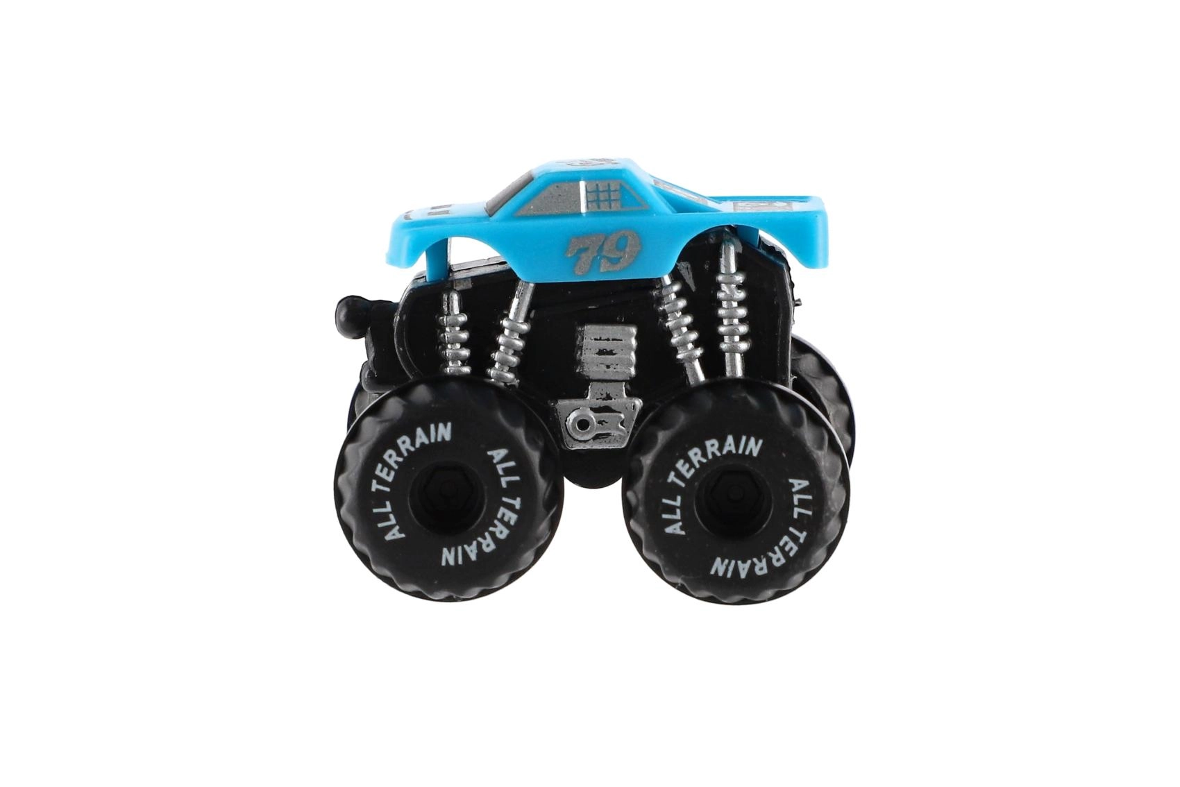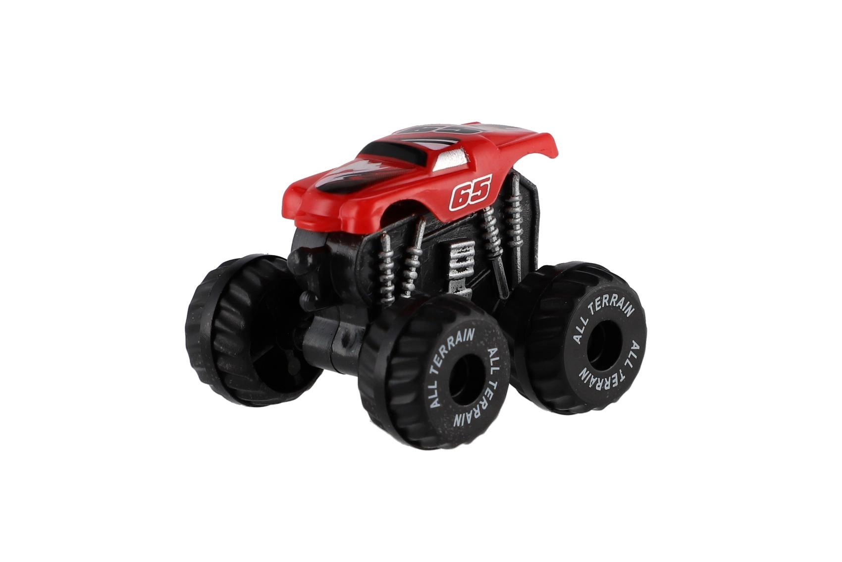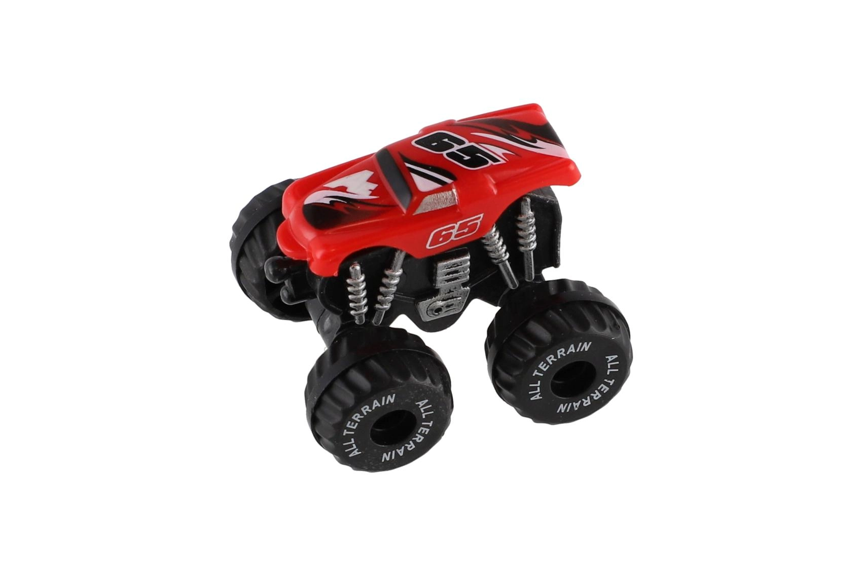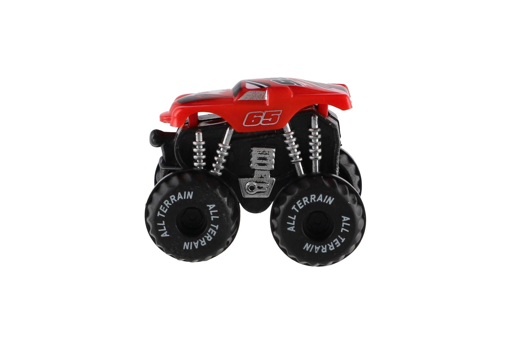 De mini‑monstertruck met opvallende “ALL TERRAIN” banden brengt dynamische actie in zakformaat. Het afvuurmechanisme met sleutel geeft extra vaart – kinderen steken eenvoudig de sleutel in de achterkant en drukken op de knop voor een directe start. Het compacte formaat van 4 cm en de robuuste kunststof afwerking zijn gemaakt voor dagelijks speelplezier.