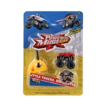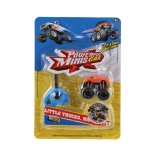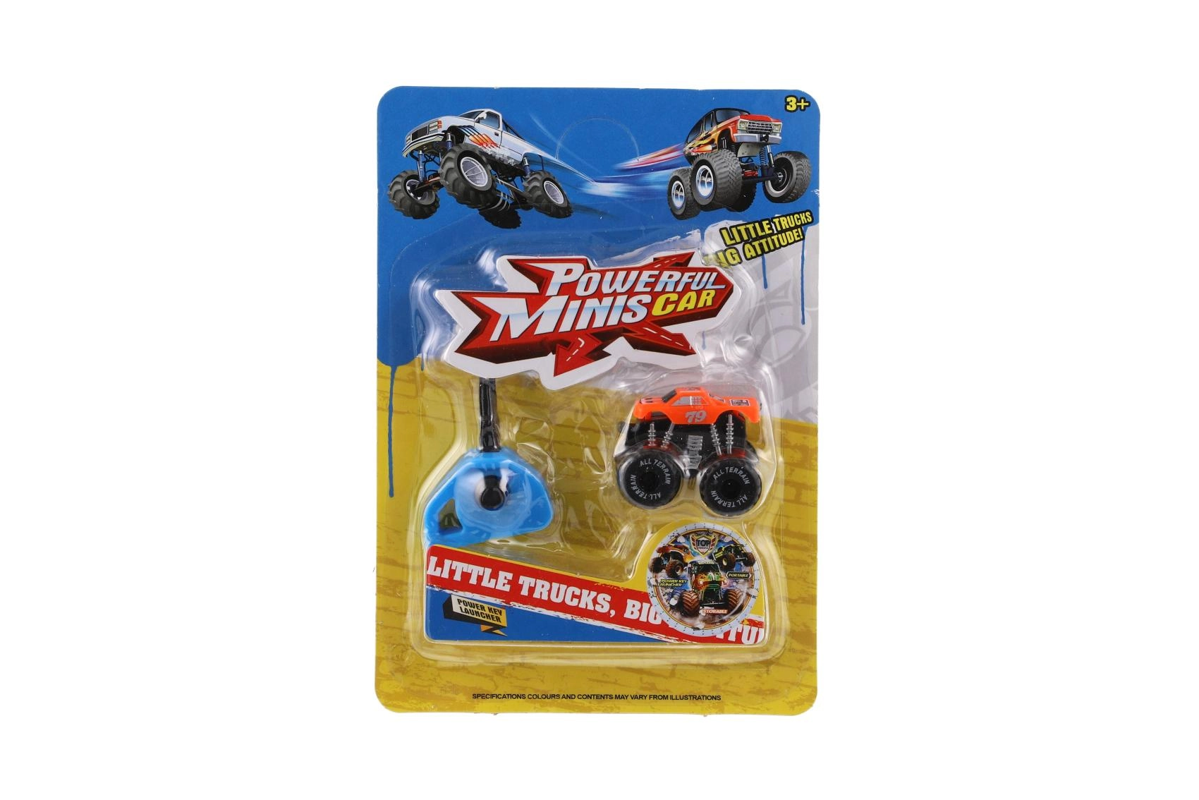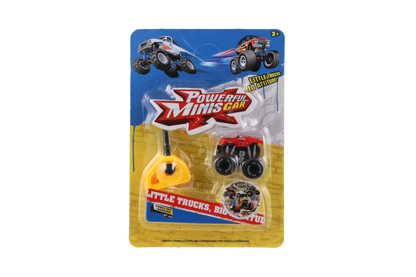 Steek de sleutel in de achterkant, druk op de knop en kijk hoe de mini‑truck naar voren sprint. Simpel, leuk en vol actie.