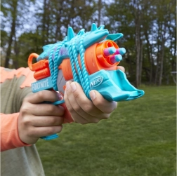 De gelicentieerde Nerf Fortnite Primal blaster brengt stijl en performance rechtstreeks uit de wereld van Fortnite. Met een capaciteit van 4 darts en intuïtief laden kun je snel richten en vuren, zowel buiten als binnen. De turkoois-oranje kleurstelling met thematische details geeft het spel een unieke look.
