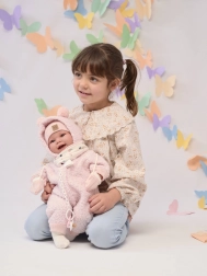 De schattige baby LLORENS NEW BORN met een zacht stoffen lijfje en realistische geluiden maakt elk kind blij. Bij het indrukken van het borstje begint de baby te lachen en zegt “mama”, “papa”. Heeft verstelbare ledematen op gewrichten, kan ook zitten en wordt geleverd in een cadeauverpakking. Handgemaakt in Spanje, lengte 44 cm, aanbevolen vanaf 3 jaar.