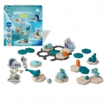Uitbreiding IJzige Avonturen is een aanvulling op elke GraviTrax Junior startset. Het bevat meer dan dertig diverse elementen waarmee je een baan kunt bouwen die door ijzige, arctische gebieden loopt! De kunststof knikker gaat onder een iglo door en door een ijsgrot, en komt onderweg vrolijke dieren tegen!