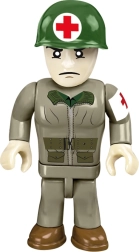 Inclusief een gedetailleerde figuur van een US Army-medic met groene helm en rood kruis – klaar om in te grijpen op het slagveld en gewonden te redden.