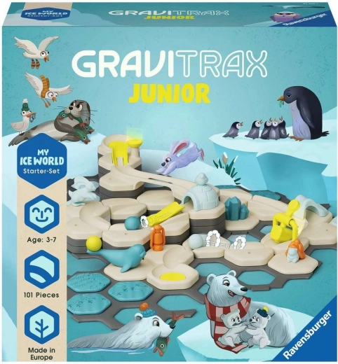 De GraviTrax Junior IJswereld startset is de ideale eerste stap in de interactieve wereld van knikkerbanen voor de allerkleinsten. Kinderen bouwen eenvoudig hun eigen ijzig koninkrijk, dat ze naar wens kunnen versieren en uitbreiden. Dankzij slimme actie-elementen zoals de Schommel en de Hamer is elke rit van de knikker anders en vol verrassingen.