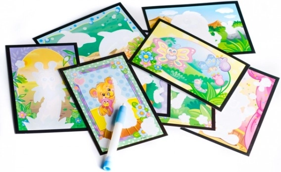 Ontdek creatieve pret zonder rommel! Met de set voor magisch schilderen met water kunnen kinderen keer op keer schilderen – alleen water is voldoende. Afbeeldingen komen tot leven in kleur zodra ze vochtig worden en keren na het drogen terug naar hun oorspronkelijke staat. Eenvoudig, veilig en herbruikbaar knutselen voor kleine kunstenaars vanaf 3 jaar.