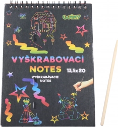 Het krasblok is ideaal voor jonge kunstenaars die hun creatieve vaardigheden willen ontdekken. De speciale zwarte laag op elk vel verbergt een gekleurde achtergrond die tevoorschijn komt wanneer de laag wordt verwijderd met het bijgeleverde stokje.