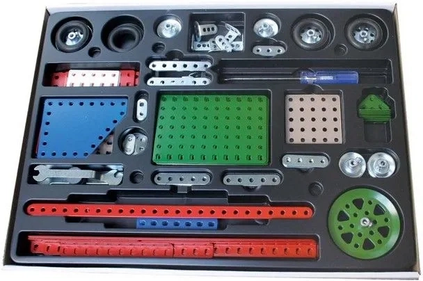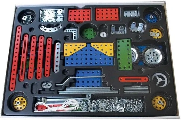 Ontdek de creatieve vaardigheden van uw kind met dit klassieke tweelaags bouwpakket van Merkur, waarmee u tot 40 verschillende modellen kunt bouwen. De set bevat 609 metalen onderdelen en componenten vereist voor het bouwen van modellen zoals vrachtwagens, formulewagens en vliegtuigen.