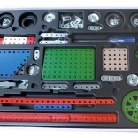 Het bouwpakket bevat 609 onderdelen waarmee tot 40 verschillende modellen kunnen worden gebouwd.