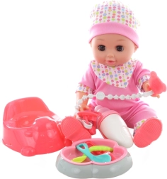 Een schattige baby van 28 cm hoog die elke kleine verzorger zal blij maken. Na het plaatsen van batterijen maakt de pop realistische geluiden en kan ze in het potje plassen. Bij inbegrepen zit een uitgebreide set accessoires voor voeden en verzorgen, waaronder schoentjes, een flesje en een bordje. Ideaal speelgoed voor het stimuleren van fantasie en rollenspel bij kinderen vanaf 3 jaar.