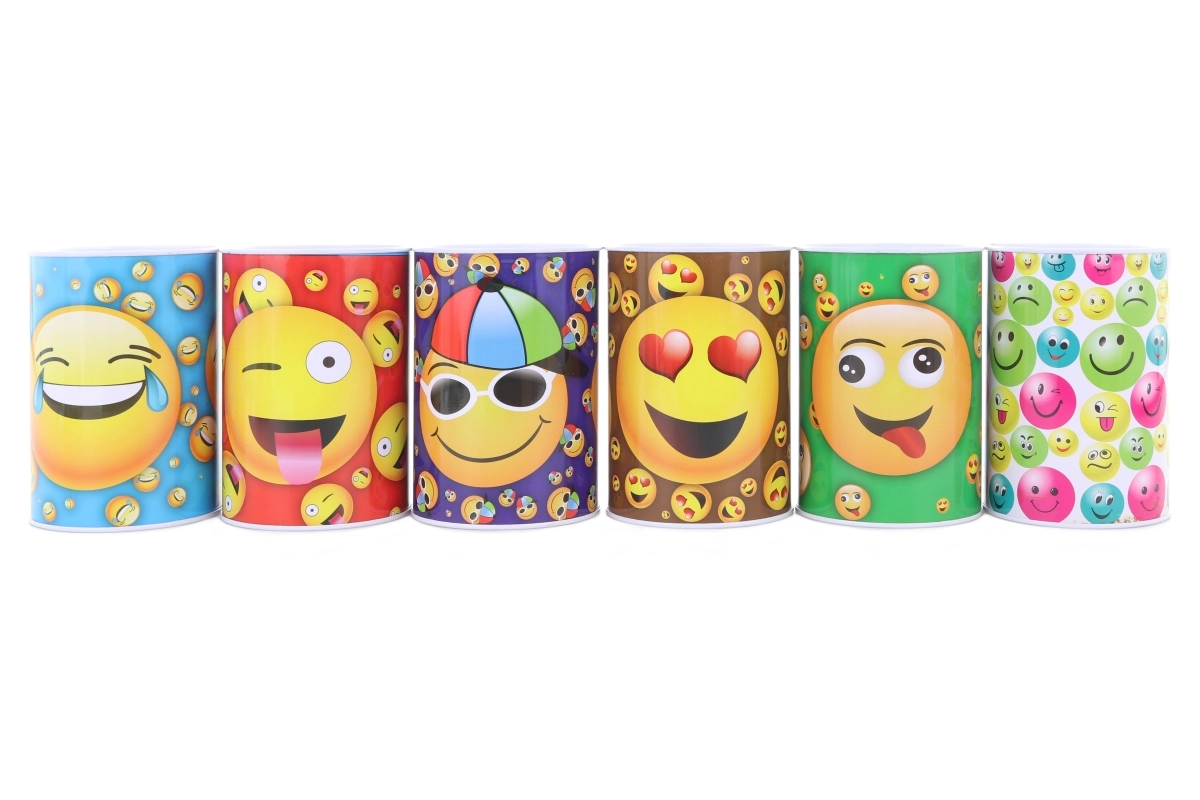 Deze blikken spaarpot met vrolijke smileys zal elk kind blij maken en is een kleurrijke toevoeging aan de kinderkamer. Dankzij de stevige metalen behuizing is hij bestand tegen dagelijks gebruik en ondersteunt hij gezonde financiële gewoonten.