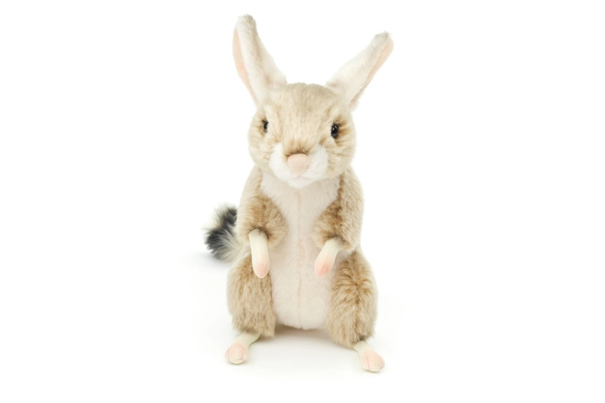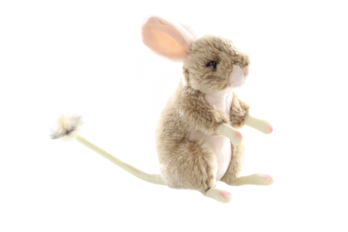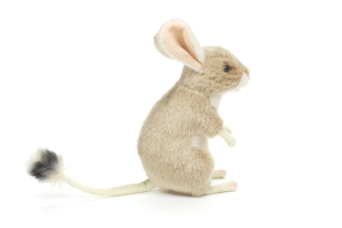 Deze pluchen jerboa in natuurlijke tinten is ontworpen voor veilig en prettig spelen. De zachte vacht, lichtroze pootjes en de lange staart met pluimpje maken hem tot een bijzonder schattige metgezel. Dankzij het compacte formaat van 18 cm ligt hij perfect in kinderhanden en is hij geschikt voor onderweg en in bed.