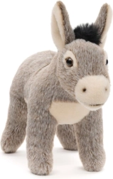 Dit charmante pluchen ezeltje zal elk kind blij maken met zijn zachtheid en realistische details. De combinatie van grijze vacht met een crèmekleurig snuitje en buik oogt natuurlijk en schattig. Dankzij het compacte formaat van 22 cm is het ideaal voor onderweg, in bed of als decoratie in de kinderkamer.