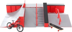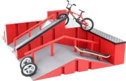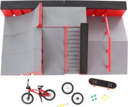Stap in de wereld van het geminiaturiseerde skatepark, waar je diverse tricks kunt uitvoeren met realistische accessoires zoals een miniatuur skateboard en een BMX-fiets. Deze set biedt: