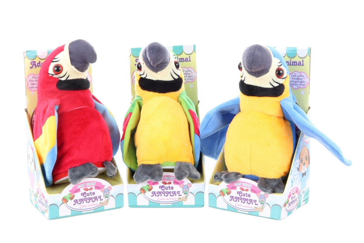 Een schattige pratende pluche papegaai die kinderen vanaf 3 jaar plezier bezorgt. Na inschakeling herhaalt hij woorden en wappert hij met zijn vleugels, waardoor het een leuke interactieve speelgenoot is voor dagelijks spel. De voeding gebeurt via 3× AAA-batterijen (niet inbegrepen).