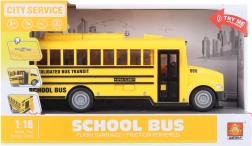 Kunststof batterij-aangedreven schoolbus met afmetingen 27 x 11 x 9 cm is het ideale speelgoed voor kinderen vanaf 3 jaar. Bij het indrukken van de knop maakt het geluiden en licht het op, wat zorgt voor zowel plezier als veiligheid.