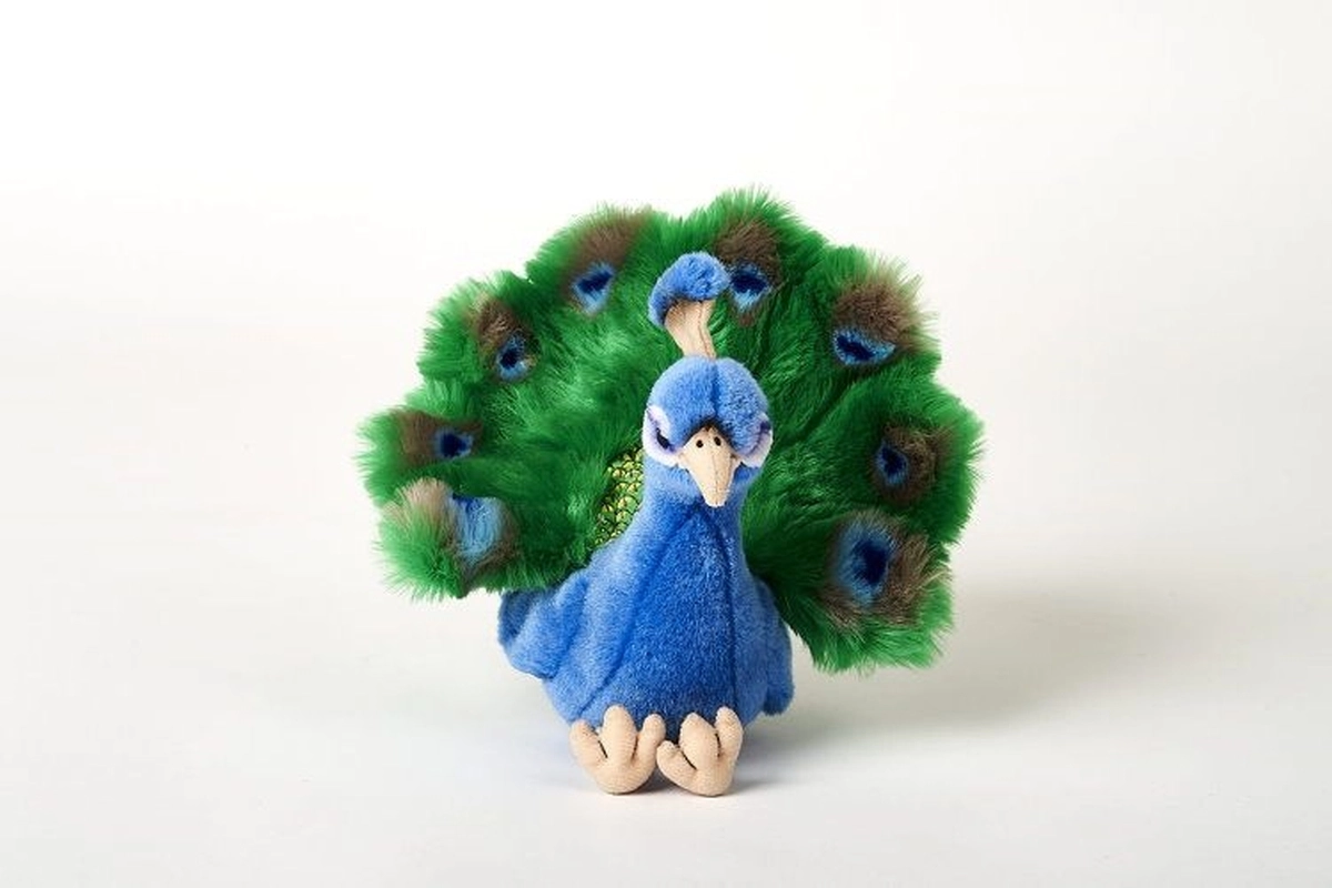 Een schattige pluchen pauw van 25 cm die zowel kinderen als volwassenen zal verblijden met zijn opvallende uiterlijk en superzachte afwerking. Ideaal om mee te knuffelen, mee te spelen en als decoratie voor de kinderkamer. Dankzij het zachte materiaal geschikt vanaf 0+, en de prachtige waaierstaart prikkelt de fantasie en zintuiglijke beleving.