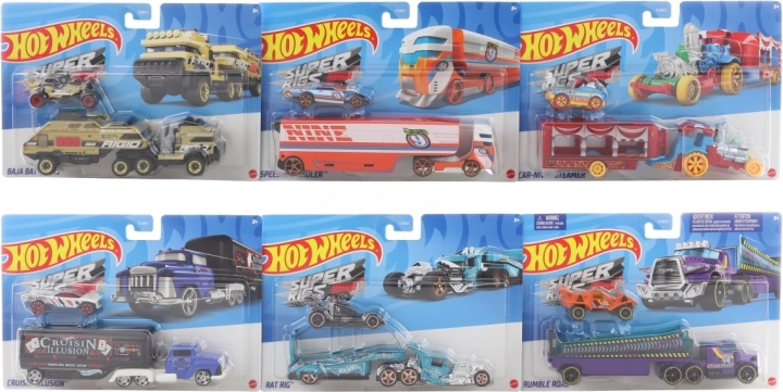 Deze transportset zorgt voor actueel speelplezier: vrachtwagen + autootje 1:64, klaar voor transport en races. Compatibel met HOT WHEELS-banen, stimuleert creatief spel en fantasie. Verschillende modellen en kleuren (kunnen variëren), vanaf 3 jaar.