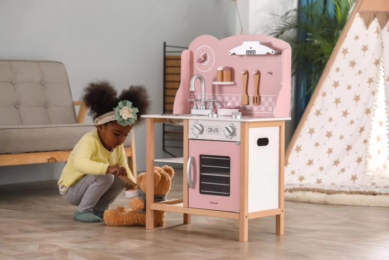 Houten kinderkeuken met accessoires, roze – VIGA PolarB