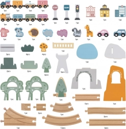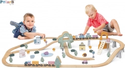 Ontdek een wereld vol fantasie met de houten treinbaan POLARB. De set bevat 90 zorgvuldig gemaakte onderdelen: rechte stukken en bochten, verhogingen en een brug, een treintje met wagonnetjes, verkeersborden, huisjes, voertuigen, diertjes, bomen en rotsen. Dankzij het eenvoudige koppelsysteem bouw je ontelbare sporen en scènes die kinderen steeds weer aanpassen en uitbreiden.