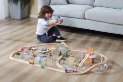Het spel is veilig en duurzaam: gladde randen, verven op waterbasis en massief hout zijn vriendelijk voor kinderen en de natuur. Bij het hanteren van de rails en accessoires oefenen kinderen hun oog–handcoördinatie, logisch denken en samenwerking tijdens het samenspelen.