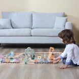 Het leggen van de rails, het verplaatsen van het treintje en het neerzetten van de elementen bevorderen de coördinatie, logica en het creatief denken – ideaal voor alleen spelen of samen.