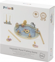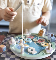 Het leuke houten magnetische visspel POLARB van VIGA biedt kinderen vanaf 18 maanden kleurrijk vissen met cijfertjes en stippen. De set bevat een ronde ondergrond, 2 hengels, een dobbelsteen en 12 visjes. Het spel ondersteunt oog-handcoördinatie, fijne motoriek, cijferherkenning en sociale interactie bij zowel competitie als samenwerking.