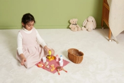 De VIGA picknickset voor kinderen biedt alles wat kleine koks nodig hebben voor de perfecte picknick. De stevige mand van “gevlochten” riet is licht om te dragen en binnenin vind je servies, bestek, drankjes en een kleurrijke selectie houten lekkernijen. Een deel van het eten is opdeelbaar in stukken en verbonden met klittenband, zodat kinderen veilig kunnen snijden en serveren.